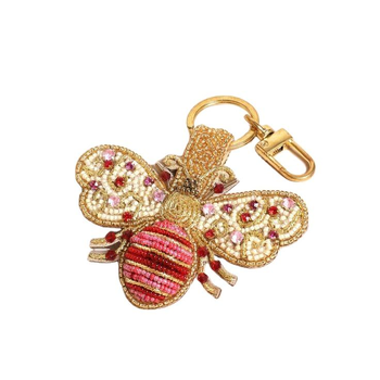 سلسلة مفاتيح مطرزة بالخرز الأحمر مصنوع يدويًا من الخرز والتطريز أكسسوارات الأزهار محفظة استوائية من glowin الموضة
