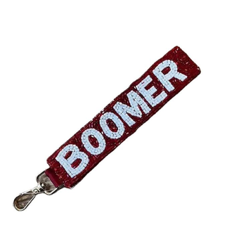 Handmade BOOMER SOONER Beaded Strap Keychain India Game Day Letter Embroidery Seed Beads Circle Pattern by glowin fashion